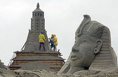 Die Sphinx als vergängliche Kunst - im Mai wird am Killesberg Stuttgart 21 in den Sand gesetzt. Foto: dpa